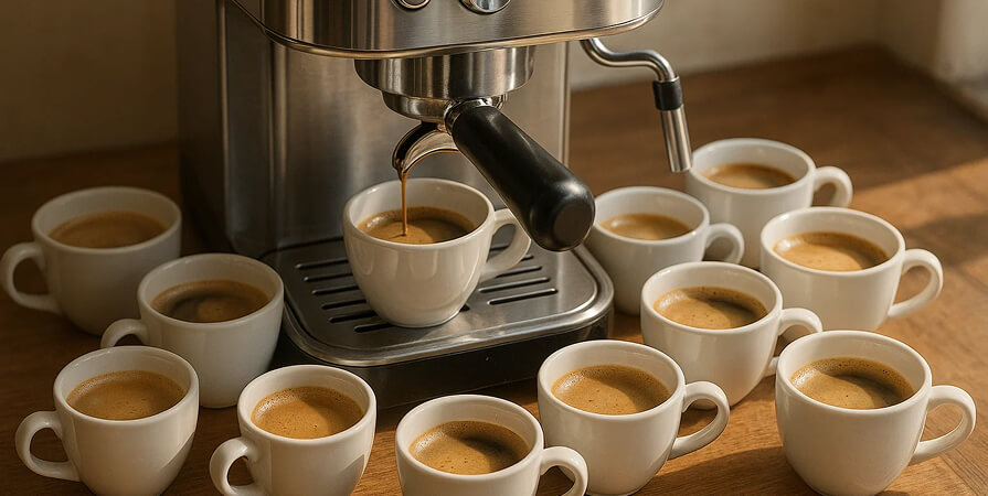 Реальная нагрузка всегда выше планируемой в 1,5-2 раза. Если думаете о 3 чашках, готовьтесь к 5-6. Планируете 10? Машина будет выдавать 15-20. И дело не только в количестве, но и в пиковых нагрузках. Пришли гости — 8 чашек подряд. Семейные посиделки — 15-20 порций за вечер.