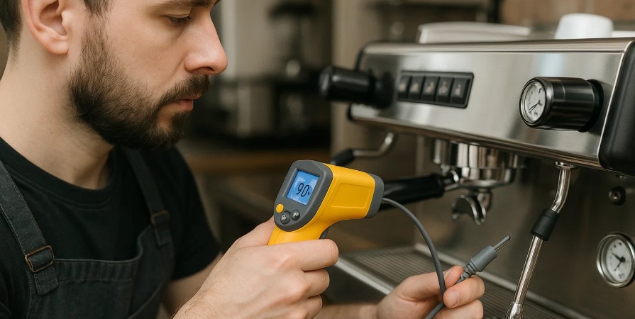 При измерении температуры корпуса термопистолетом выяснилось, что задняя стенка нагревается до 65°C при норме 40°C. Перегрев привел к деформации пластиковых элементов воздушного клапана капучинатора.
